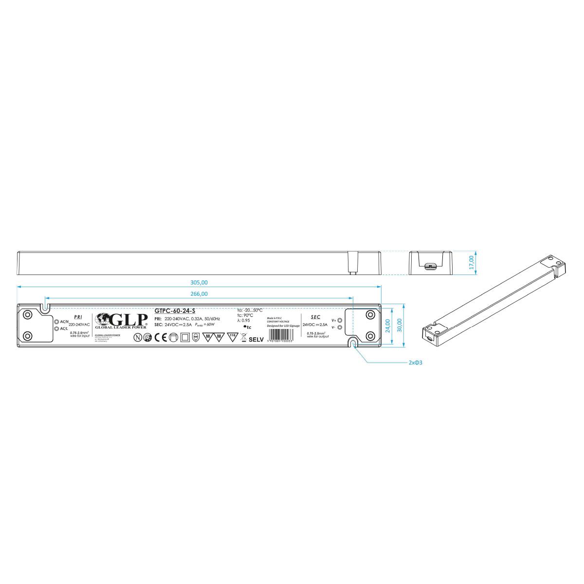 Bloc d’Alimentation LED GLP extra plate 60W 24V 2.5A IP20 pour l’installation de meubles