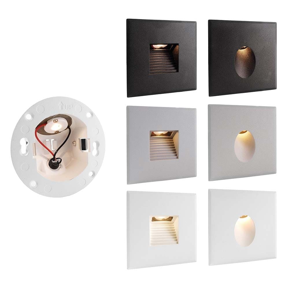 Applique murale encastrable 230V carré 1.5- 5W noir pour escalier IP44
