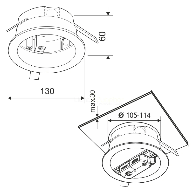 Le Cadre d’installation pour le montage des rails d’alimentation triphasés GLOBAL Trac au plafond.