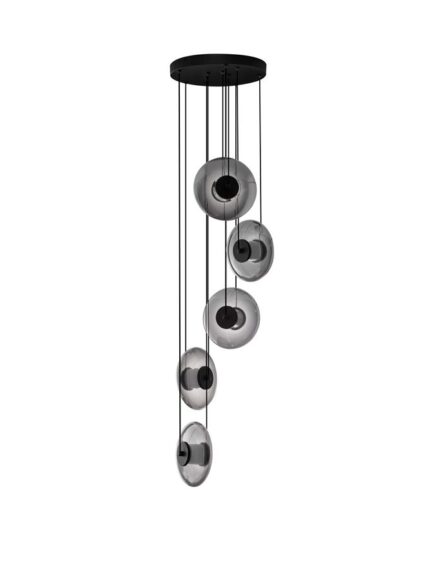 Suspension Bios 5 sources lumineux 41W 3000K Blanc chaud Ø 52 cm noir & verre fumé