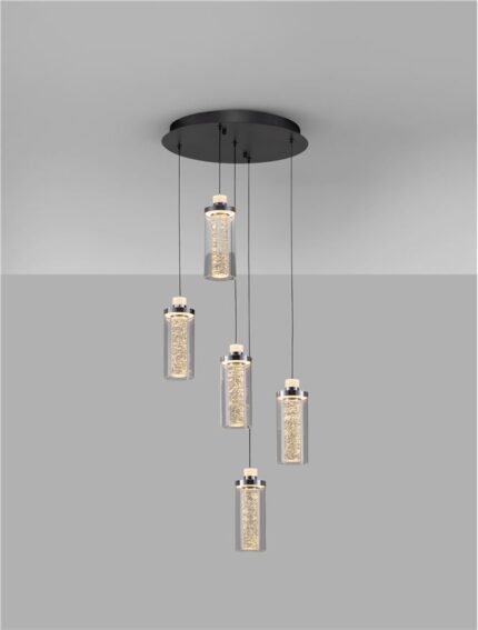 Suspension Skia 5 sources 40W 3000K Ø 40 cm noir- transparent