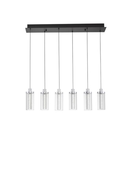 Suspension LED Lune linéaire 81cm 6 flammes 3000K noir-chrome