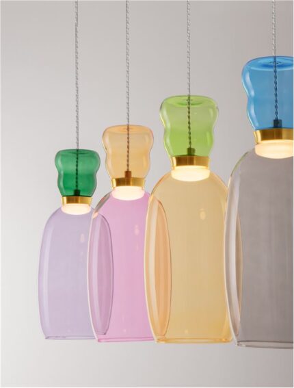 La suspension Pluma de Nova Luce incarne la force des couleurs, l’élégance et le design moderne. Avec ses quatre abat-jour