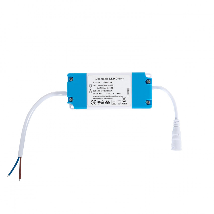 Driver Dimmable TRIAC 220-240V Sortie 30-42V DC 450mA 18W