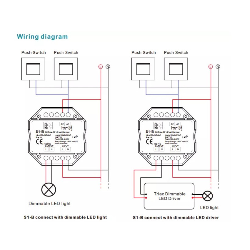 Module de Variation LED Triac RF/Poussoir