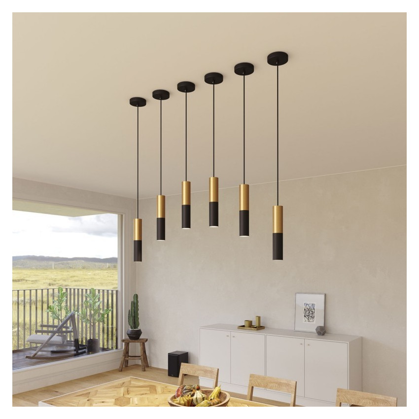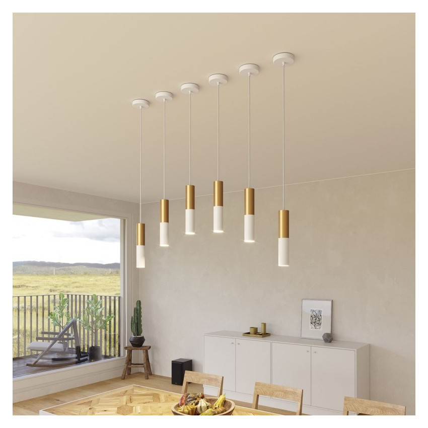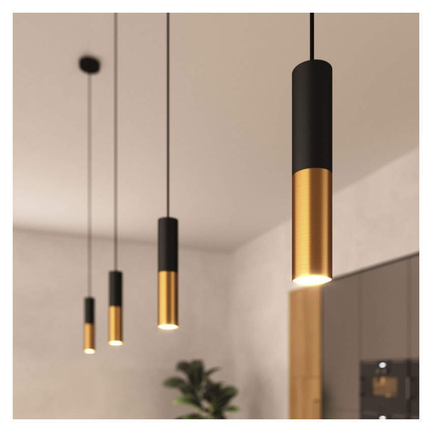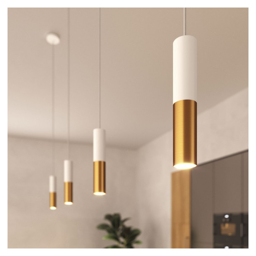 La Lampe Suspendue Creative-Cables Modèle PDMV_ Abat-Jour Tub-E14 est composée de trois abat-jour bicolores, avec une finition métallique, chacun d’entre