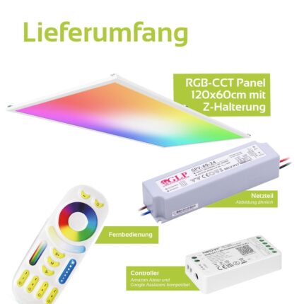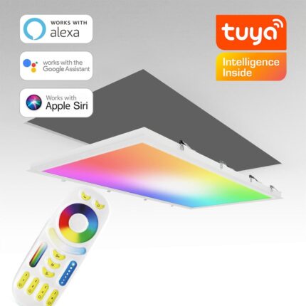 Panneau LED RGB+CCT 120x60cm avec commande MiBoxer 60W 24V cadre blanc – Montage de Panneau: sans carde