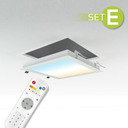 Kit de panneaux LED CCT E 30x30cm18W 3000K-6000K cadre d’encastrement blanc télécommande alimentation