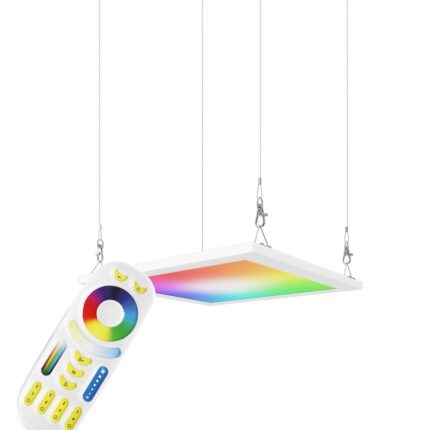 Panneau LED RGB+CCT 30x30cm avec commande MiBoxer 18W 24V cadre blanc – Montage: Suspension par Câble de 1 Mètre