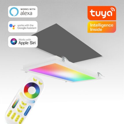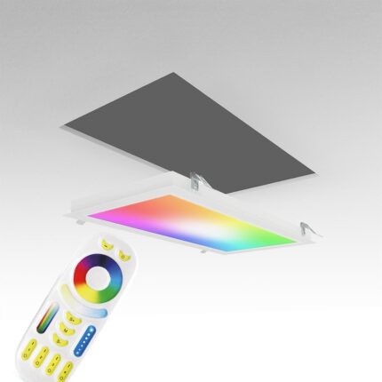 Panneau LED RGB+CCT 60x30cm avec commande MiBoxer 18W 24V cadre blanc – Montage: Clips de montage au plafond