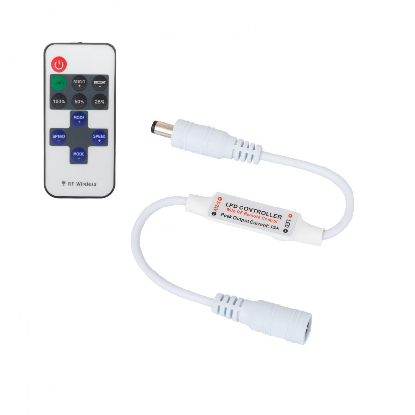 Mini Controleur Variateur Ruban LED Monochrome 5/12V DC avec Télécommande RF