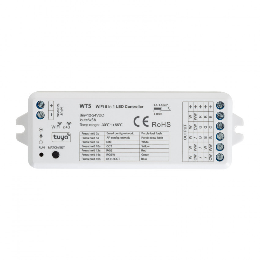 Le Mini Contrôleur Variateur Ruban LED 12/24V DC RGB WiFi est spécialement conçu pour contrôler les rubans LED connectés à distance depuis votre portable. Vous pourrez