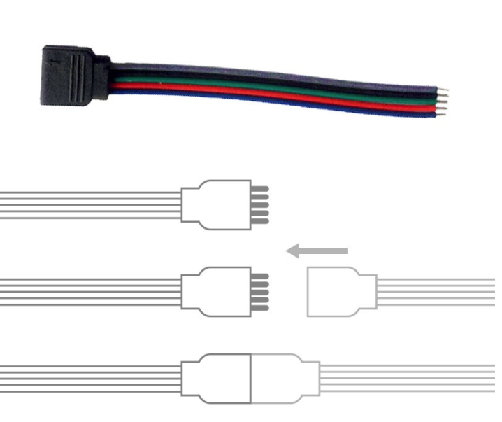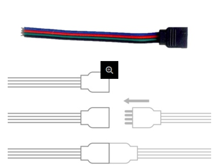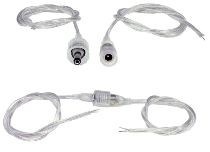 Le câble + plug Mâle ou Femelle peut être soudé directement sur un ruban LED monochrome. Le câble muni d’une fiche mâle permet de connecter un ruban LED à