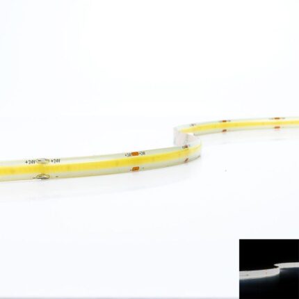 Ruban LED COB Blanc Froid 24V CRI90 – 5M, 11W/m, 480LED/m, 8mm, IP65, 6500K Ce ruban LED COB 24V émet