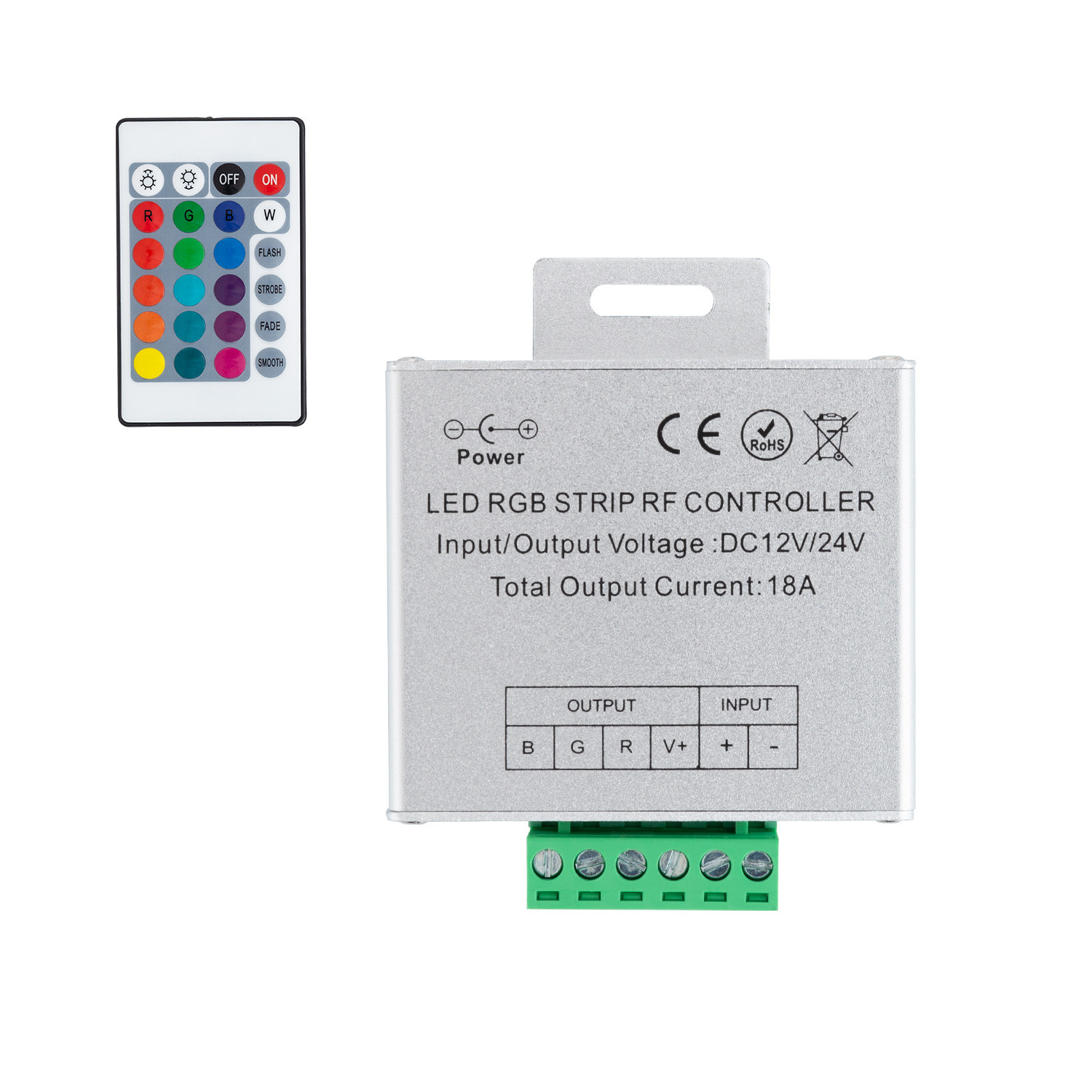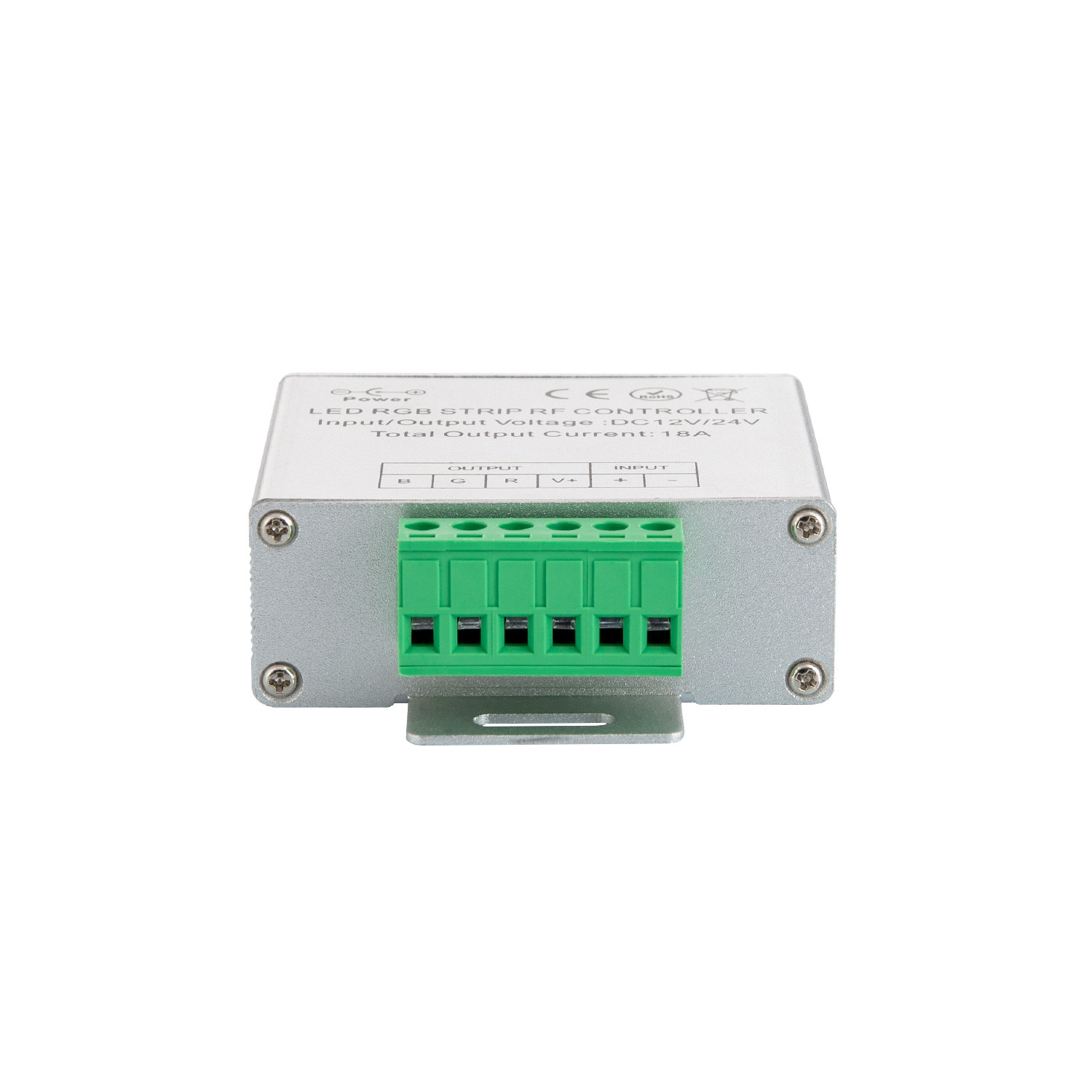 Contrôleur pour ruban LED RGB 12V-24V DC et 18A. Il dispose de plusieurs modes de lumière, modifiée l’intensité, la couleur