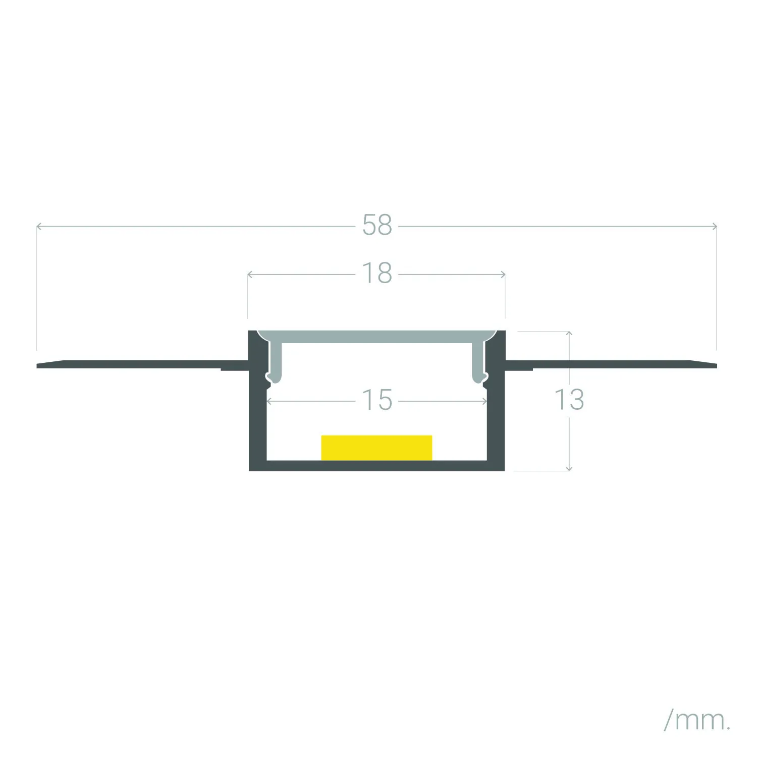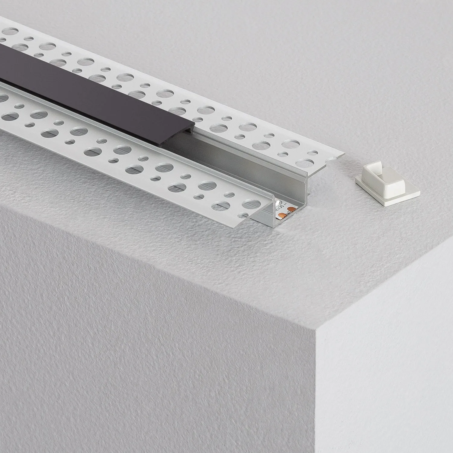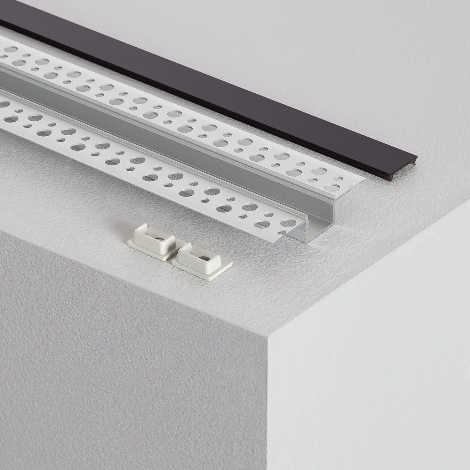 Das Aluminiumprofil für Gipseinbau 2m für LED-Streifen ermöglicht uns eine einfache und elegante Installation unserer LED-Streifen. Ideal für den Einbau in Gipsplatten oder -wänden, sodass Aluminiumrahmen, Nähte und Kanten nicht sichtbar sind.