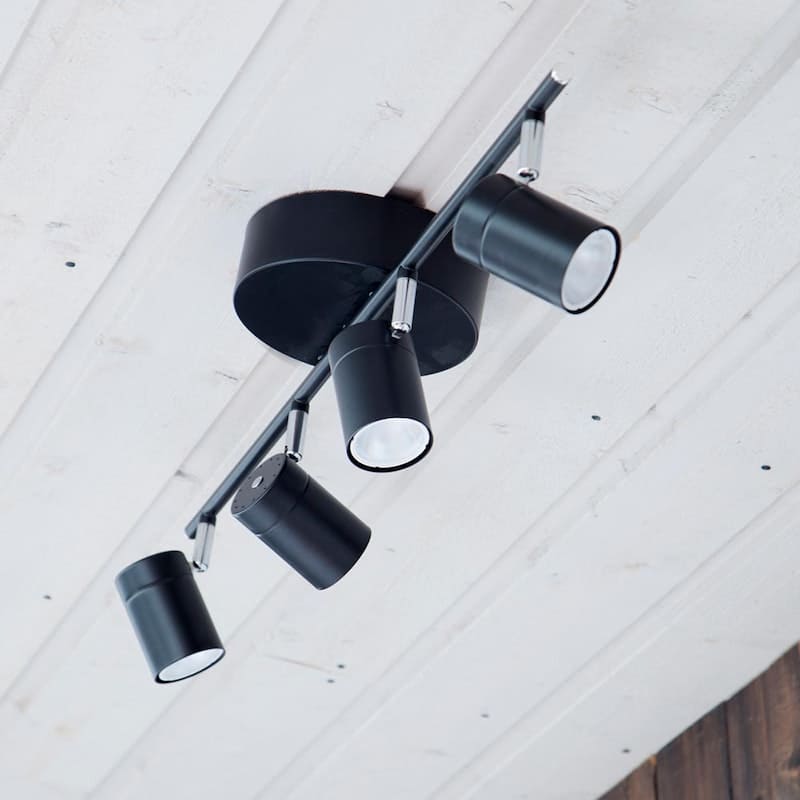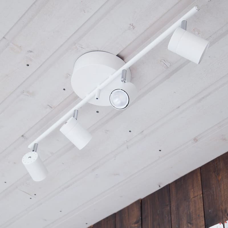 Correct ist ein 4-flammiger Deckenstrahler aus Metall mit ausrichtbarem Köpfen. Die Lampe passt perfekt in den Flur oder das Schlafzimmer. Correct verfügt über eine großzügige Kabelabdeckung und ein Hakensystem für eine einfache Installation. Die Leuchte ist in Weiß und Schwarz erhältlich.