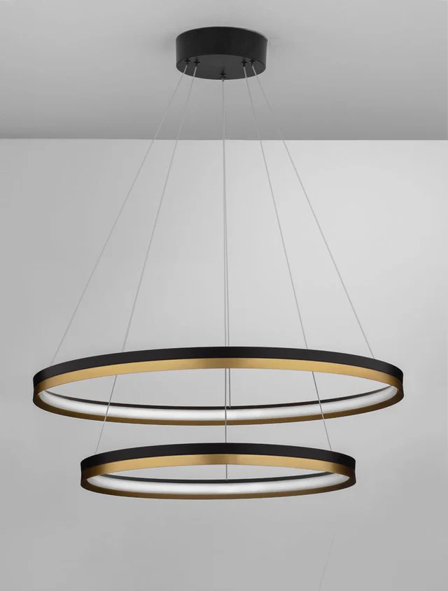 Gefertigt aus pulverbeschichtetem Aluminium in edlem Schwarz-Gold, verbindet die Cantria elegante Ästhetik mit modernster LED-Technologie. Eine Pendelleuchte, die Design und Funktionalität auf höchstem Niveau vereint.