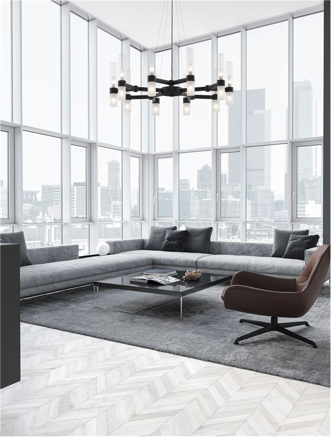 • Die Kollektion ist in drei Größen (Ø 70/85/120 cm) erhältlich und erinnert in ihrer imposanten Optik an einen futuristischen Kronleuchter – markant, elegant und unverwechselbar.