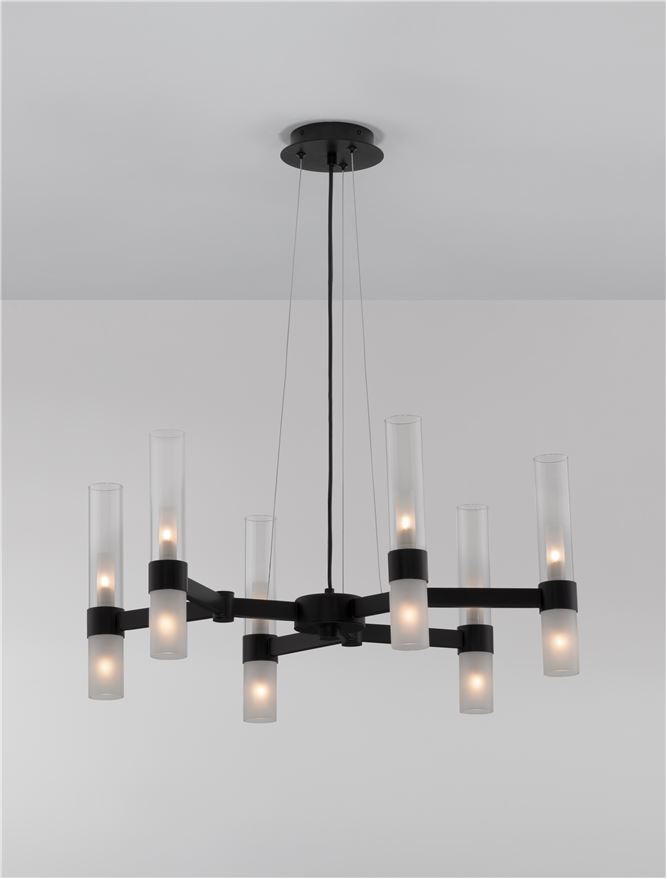 Century setzt ein prägnantes Statement zwischen Modern Glam und Vintage-Chic. Der geometrische Schirm aus schwarzem Aluminium trifft auf klar strukturierte Diffusor-Gläser, die das Licht weich brechen und eine faszinierende Atmosphäre erzeugen – über Esstisch, Kücheninsel oder in großzügigen Wohnbereichen.