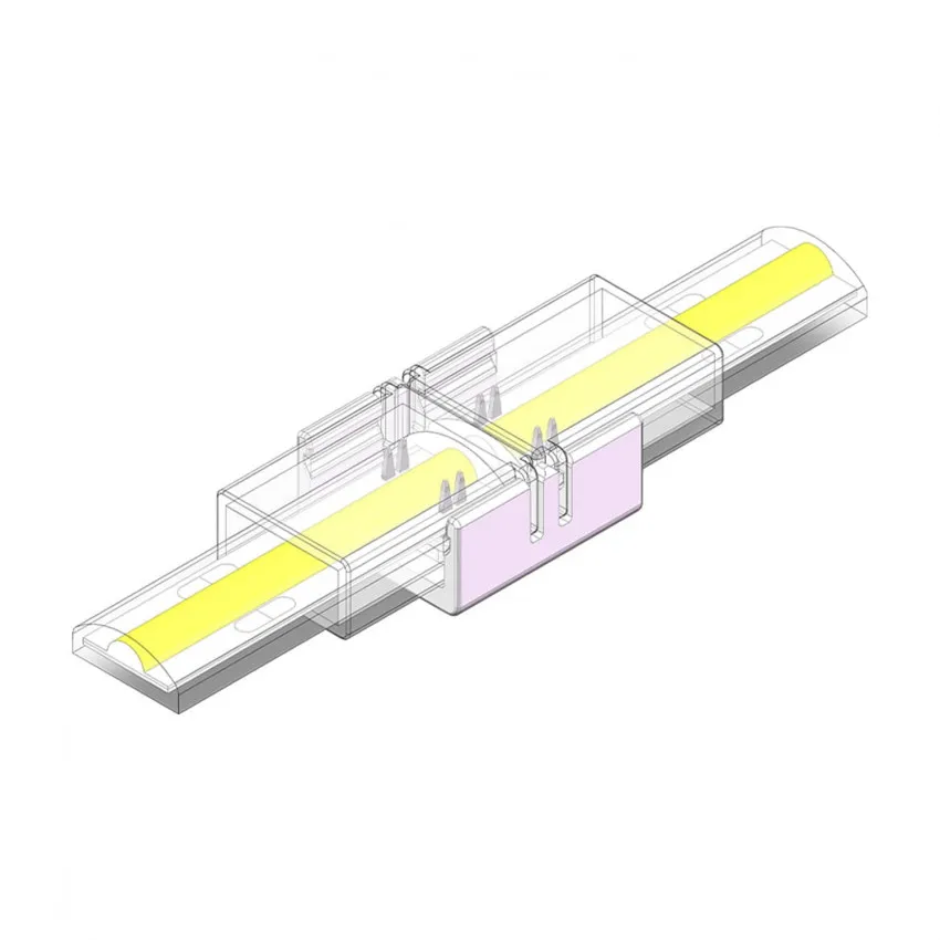 Mit dem Clip-Verbinder Doppelt mit Kabel können Sie schnell und einfach zwei LED-Streifen ohne Gleichrichter 220V AC SMD Silicone FLEX mit einer Breite von 12 mm verbinden.