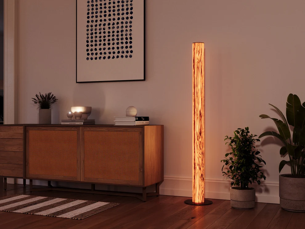 In sorgfältiger Handarbeit in einer bayerischen Manufaktur gefertigt, ist jede Columna ein Unikat – individuell, authentisch und von natürlicher Schönheit geprägt. Das durchscheinende Furnier erzeugt ein angenehm weiches, warmes Licht, das den Raum in eine behagliche Atmosphäre hüllt und gleichzeitig den charaktervollen Ausdruck des Holzes unterstreicht.