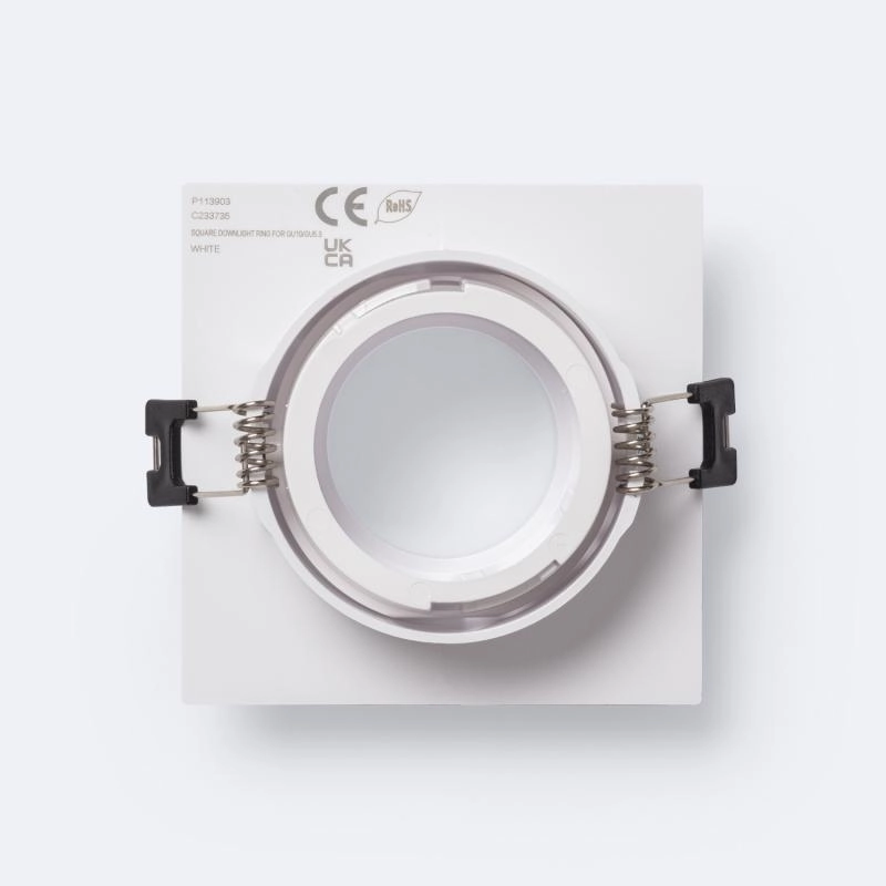 Der Downlight-Ring Suefix Quadratisch Schwenkbar mit niedrigem UGR für LED-Glühbirnen GU10 / GU5.3 Schnitt Ø75 mm ist ein Beleuchtungselement mit einem zeitlosen und minimalistischen Design, das es ermöglicht, die Ästhetik eines jeden Raums zu verbessern und gleichzeitig die gewünschte Lichtleistung bereitzustellen.
