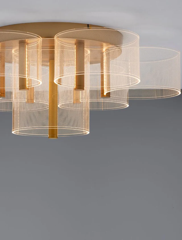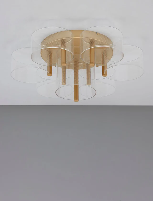 Mit einer Höhe von 25,6 cm und einem Durchmesser von 68 cm setzt sie als Deckenleuchte ein starkes Statement, bleibt aber mit 5,1 kg leicht zu montieren.