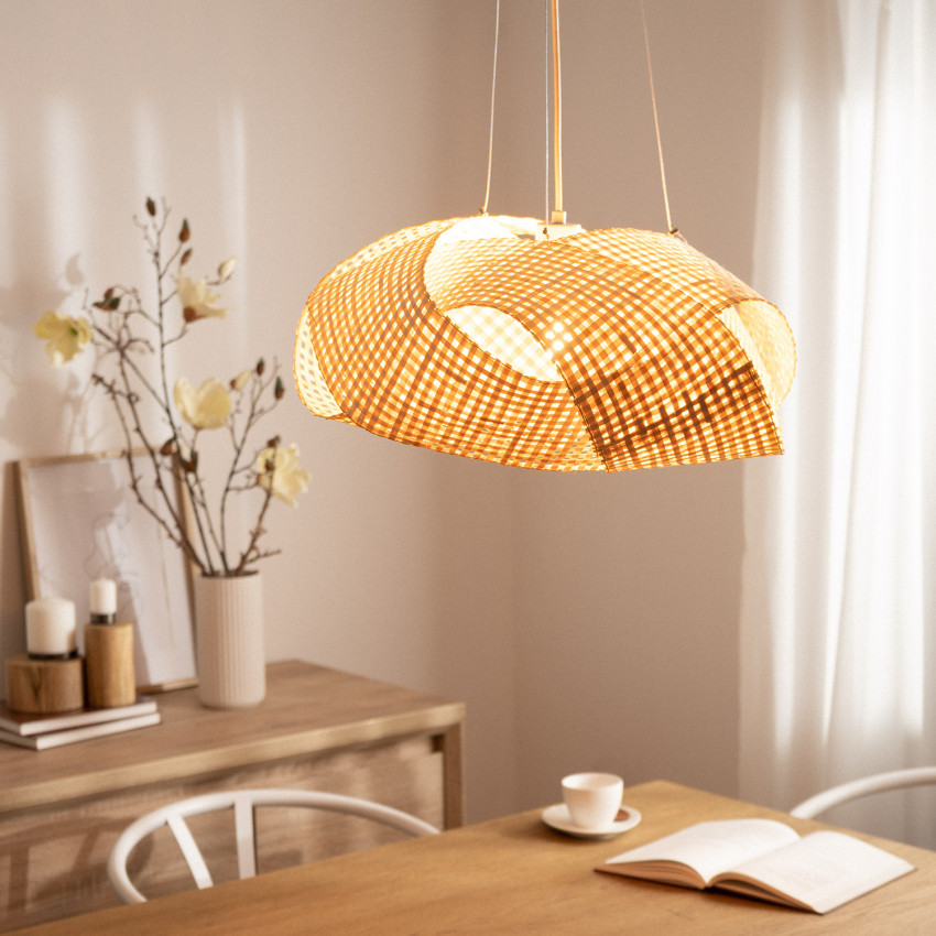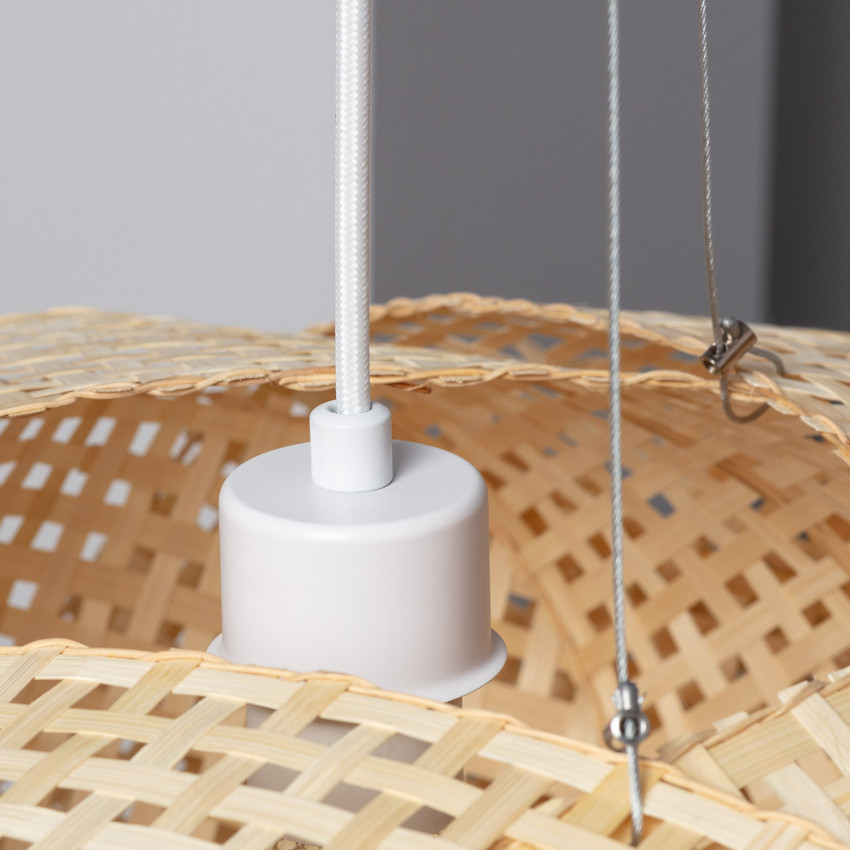 Wir verlieben uns auf diese wunderschöne Pendelleuchte aus der SAIL-Kollektion, eine Leuchte mit modernem Look und leuchtendem Charme. Schaffen Sie mit der Bambus-Pendelleuchte SAIL eine warme Lichtatmosphäre in Ihrem Interieur. Halbkreisförmig, präsentiert sein Schirm Ø 56 x H. 23 cm eine durchbrochene Struktur in gekreuztem Flechtwerk von schönster Wirkung. Bei eingeschalteter Lampe filtern die Holzlamellen das Licht und werfen ihre Schatten an die Wände. In einem Wohnzimmer, einem Schlafzimmer oder einem Eingangsbereich platziert, sorgt diese Pendelleuchte somit für eine schöne Beleuchtung. Einfach zu installieren, wird es von einem verstellbaren weißen Kabel getragen.