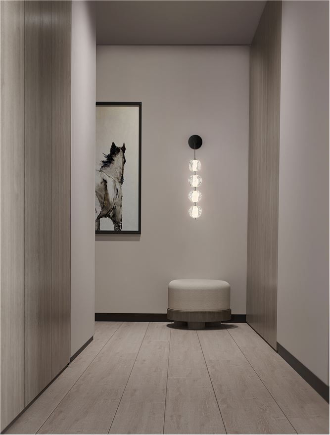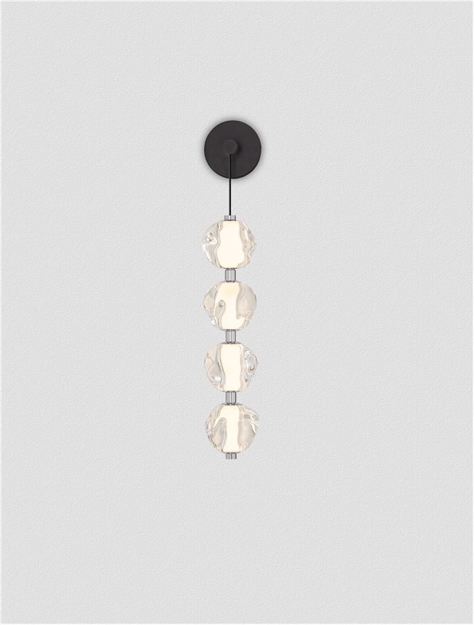 Die schlanke Formgebung und die hochwertige Materialkombination aus Sandy Black & Chrome Metall sowie klarem Acryl verleihen der Leuchte einen edlen Charakter, der sich sowohl in moderne Wohnkonzepte als auch in gehobene Geschäftsräume perfekt einfügt.