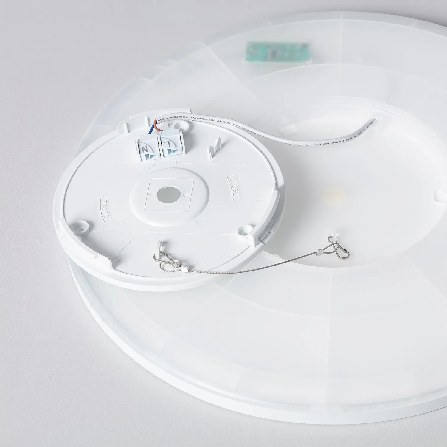 Die Installation ist sehr einfach, denn es werden nur zwei Schrauben benötigt, um die runde LED-Deckenleuchte 24 W an der Decke zu befestigen.