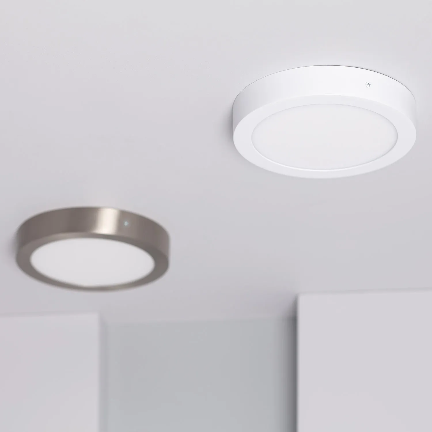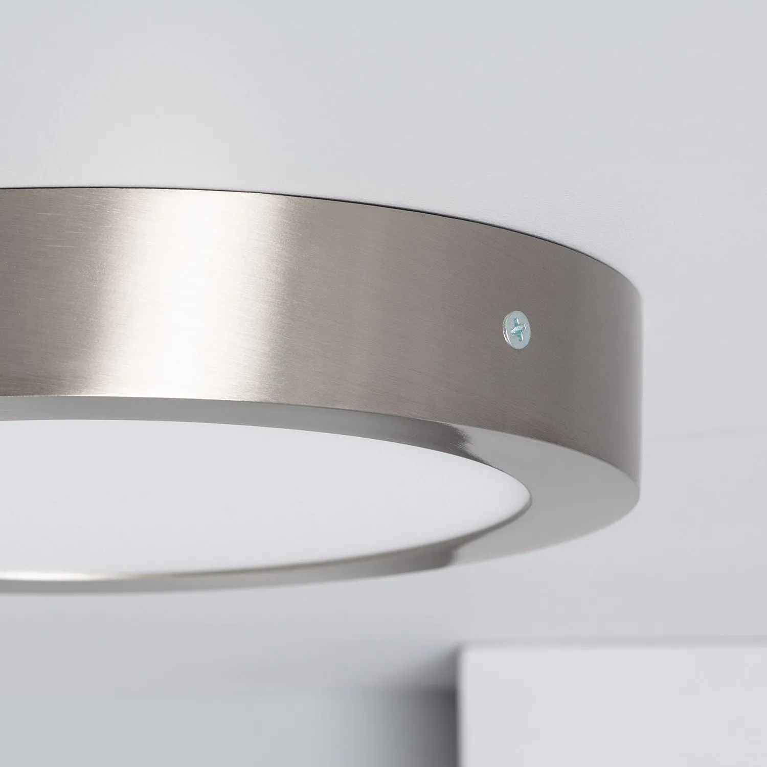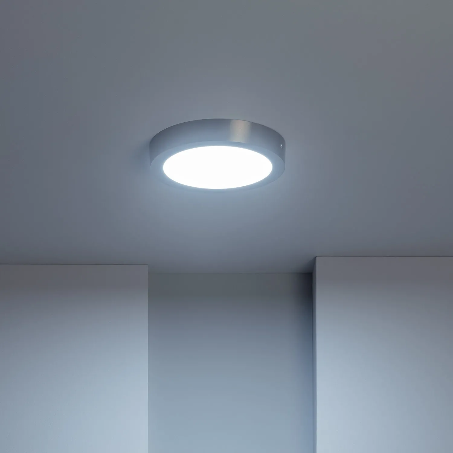 Die LED Deckenleuchte rund 18W mit silbernem Rahmen Ø225 mm hebt dadurch hervor, dass sie sehr einfach montierbar ist, mit einem eleganten Design.