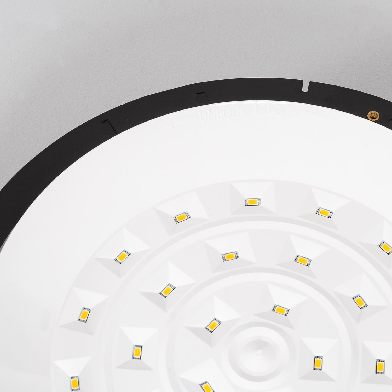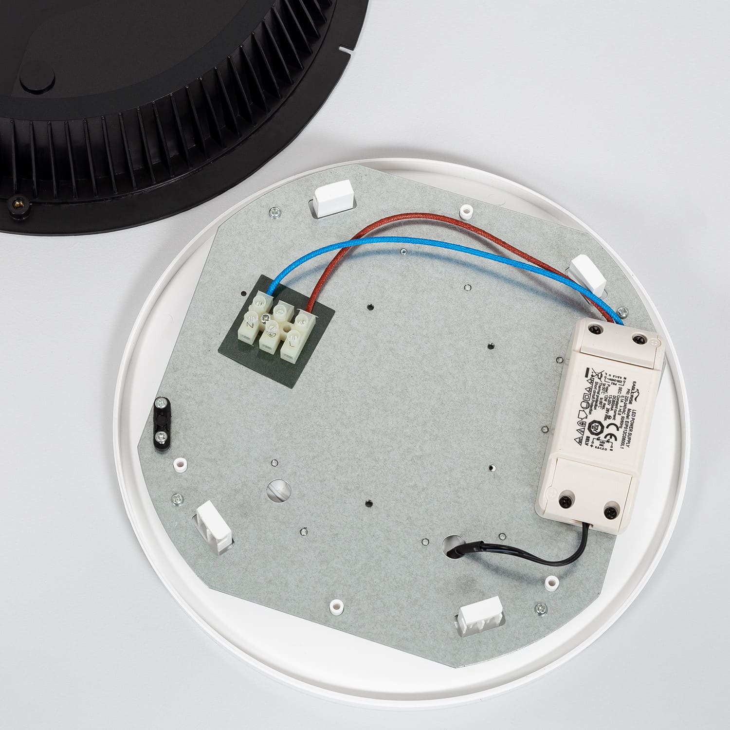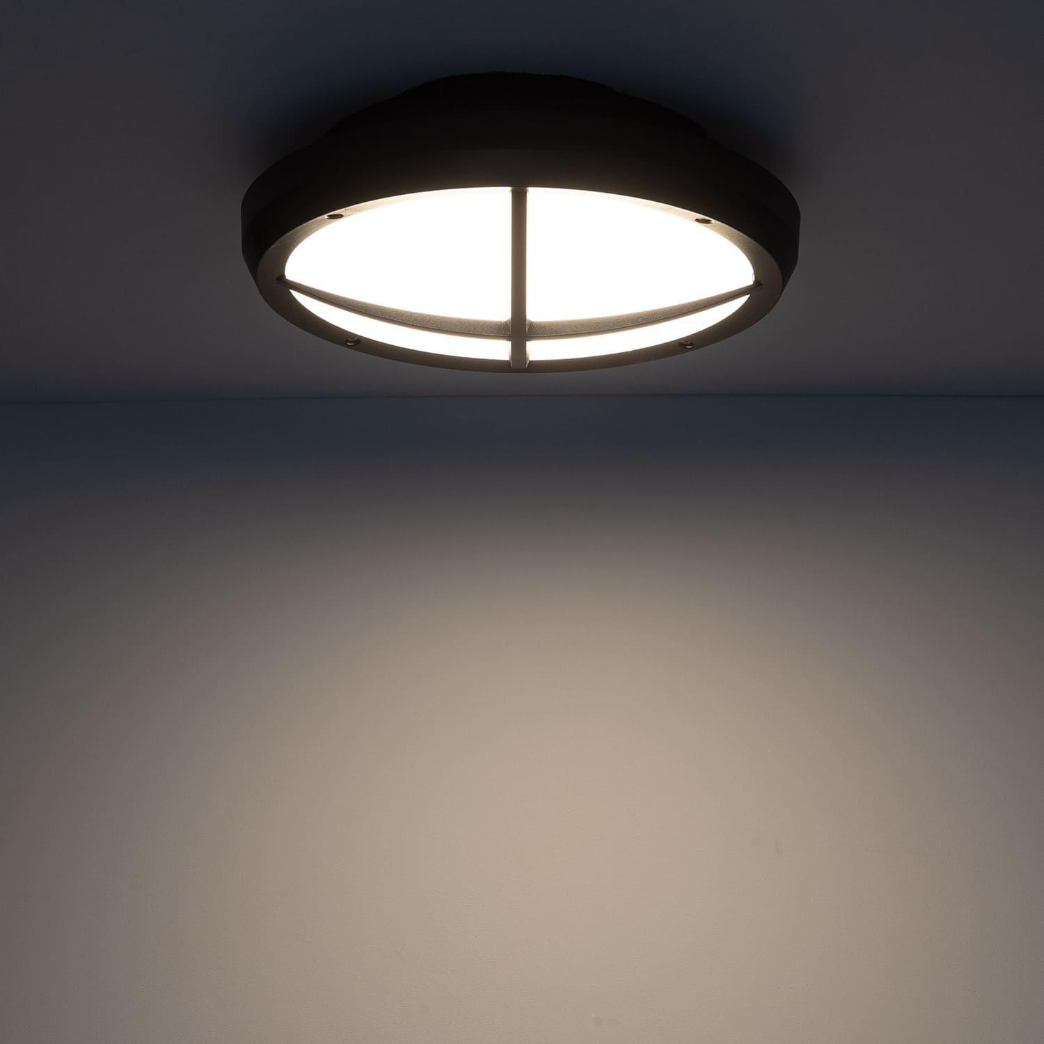 Die hochwertige PC-Oberfläche und die Schutzart IP65 machen sie zu einem staub- und wasserdichten Element. Daher können wir die Linus LED Wand/Deckenleuchte IP65 in einer großen Anzahl von Stellen wie Balkone, Fassaden, Gärten oder Außengänge installieren. Es kann auf jeder Art von Untergrund befestigt werden, indem die Wand/Deckenleuchte an Decken und Wänden eingeschraubt wird. Um die Schutzart IP65 aufrechtzuerhalten, muss der Kunde sicherstellen, dass alle gelieferten Komponenten ordnungsgemäß befestigt und gesichert sind.