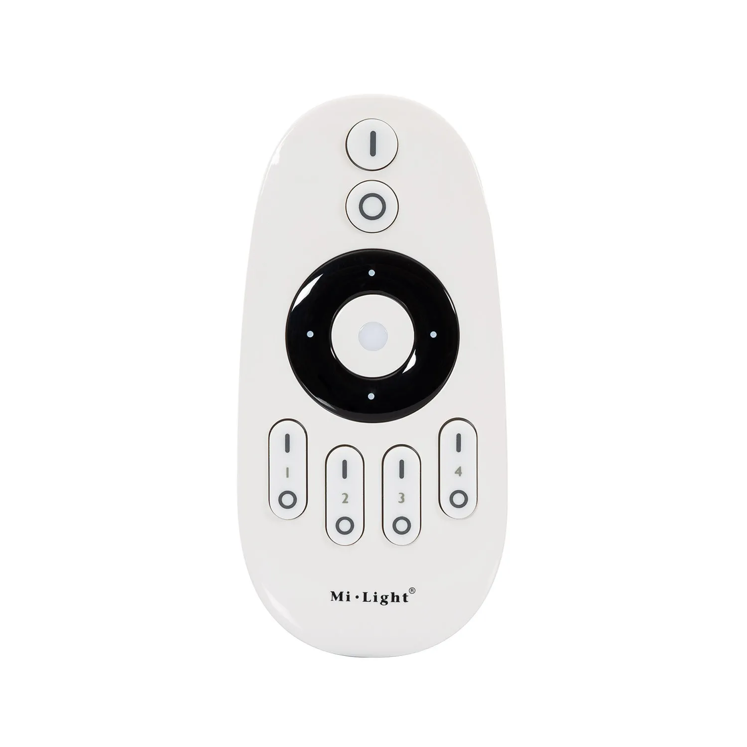 Die Fernbedienung-RF für MiBoxer einfarbige LED-Dimmer arbeitet mit RF-Technologie. Mit der Taste ON/OFF kann die Leuchte ein- und ausgeschaltet werden und mit den anderen Tasten der Fernbedienung können die Helligkeit und die Farbtemperatur von bis zu vier Zonen geregelt werden.