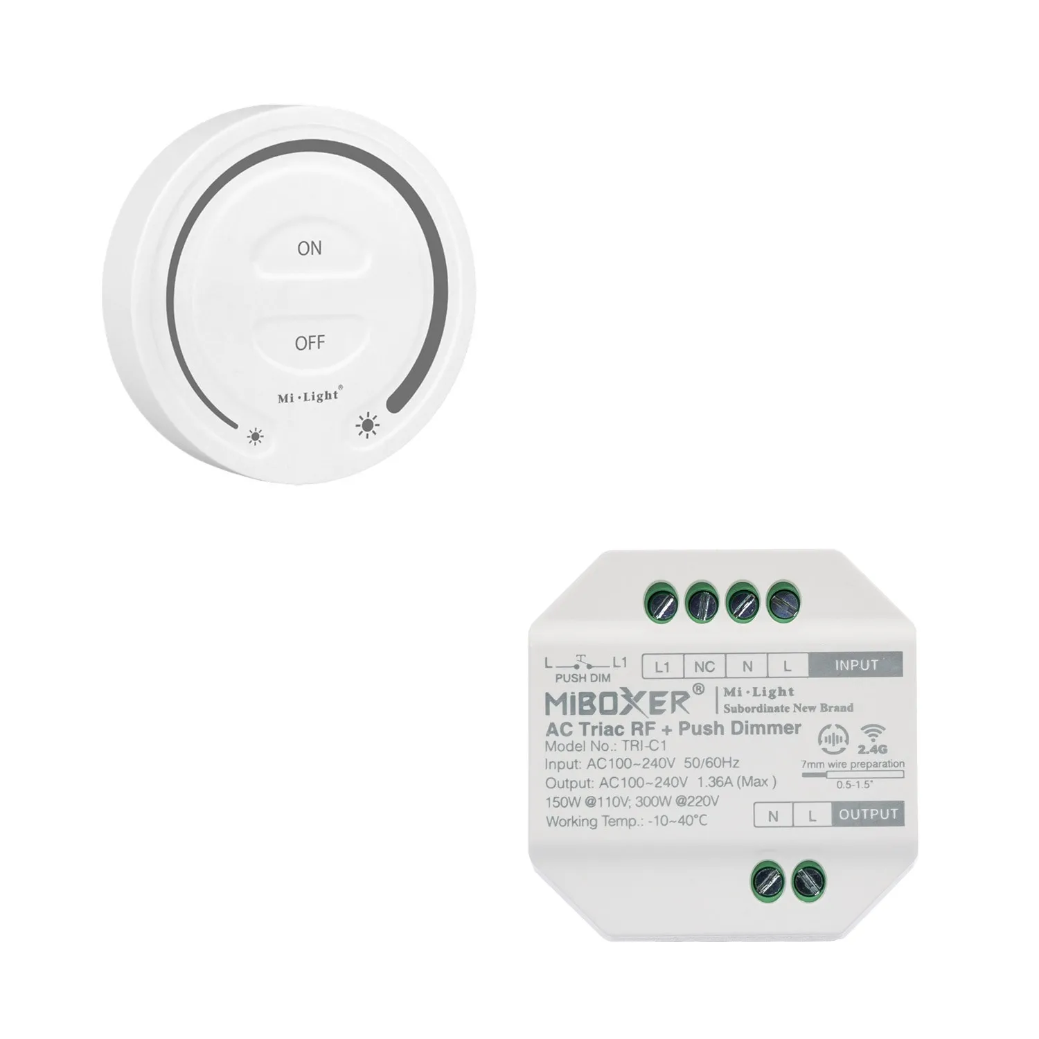 Der LED-Dimmer TRIAC + Fernbedienung RF Einfarbig MiBoxer ist ein Set bestehend aus einem Controller und einem drahtlosen Controller.