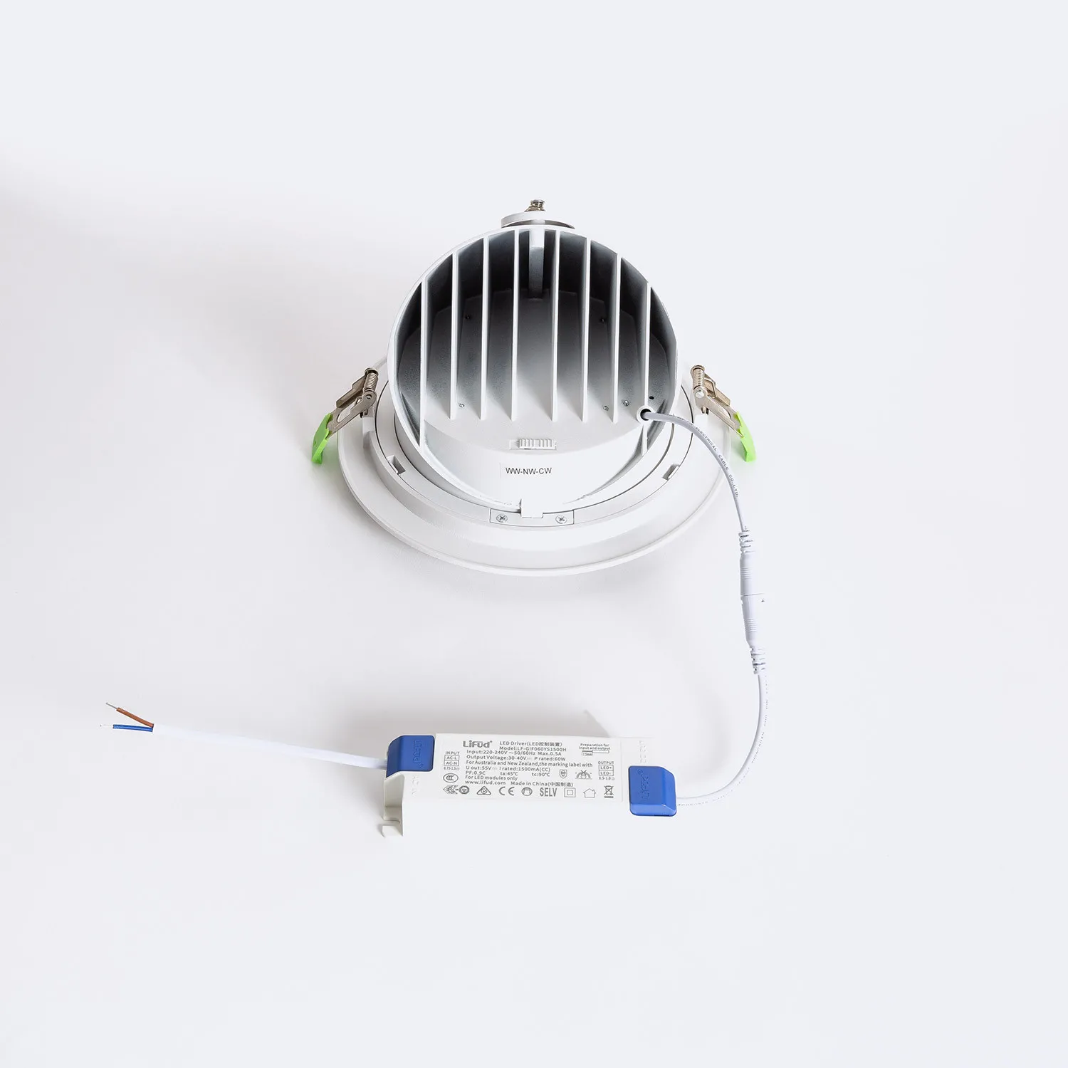 Der LED-Downlight Strahler Schwenkbar Rund 60W OSRAM 120 lm/W CCT Anti-Flicker vereint auf perfekte Weise Design, Leistung und Energieeinsparung. Diese Eigenschaften machen sie zu einer sehr interessanten Option für die Beleuchtung von Geschäfts- und Geschäftsräumen.