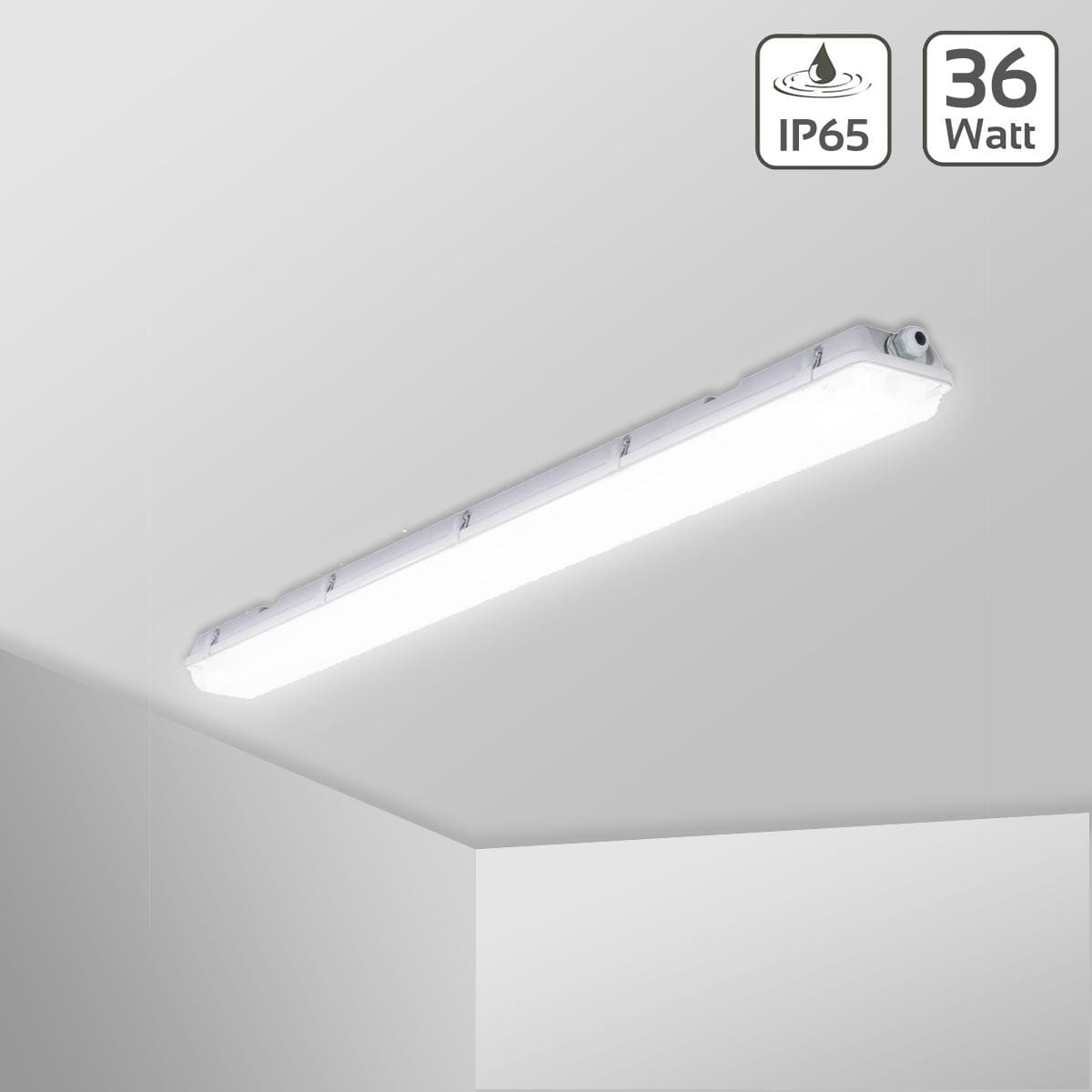 Die LED Feuchtraum Lampe 36W 3000 Lumen120cm neutral weiss 4000K ist mit zwei LED-Röhren ausgestattet und leuchtet mit einer Helligkeit von 3000 Lumen.