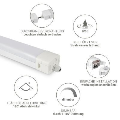Die LED Feuchtraum- Wannenleuchte in 1.200mm Länge 40W bietet optimale Lichtergebnisse unter allen Umgebungsbedingungen. Die hohe Effizienz ihrer Lichtquelle erreicht
