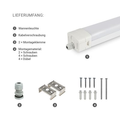 Set Wannenleuchte Slim mit 1 LED- Röhren 1200mm einseitige Einspeisung