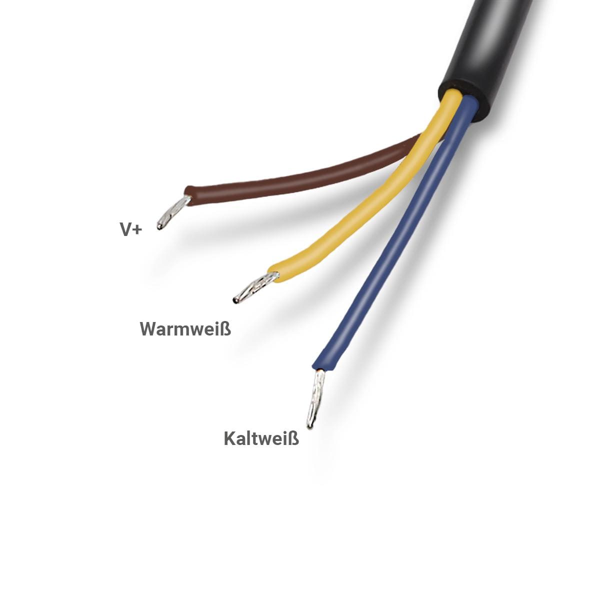Mit der Funkfernbedienung (nicht im Lieferumfang enthalten) können Sie die Lichtfarbe stufenlos anpassen und zwischen Tageslichtweiß, Neutralweiß und Warmweiß wählen.