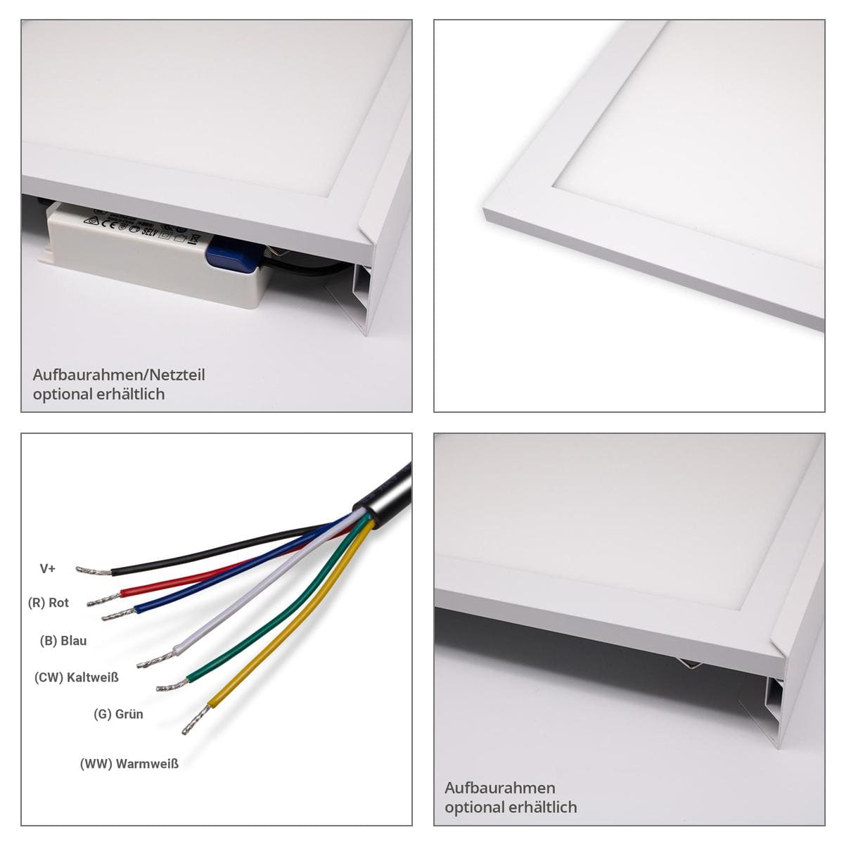 Das RGB CCT Panel verfügt über ca. 16 Millionen Farbeinstellungen, die über den RGB+CCT Controller gemischt werden. Mit entsprechendem Zubehör wechseln Sie die Farbe per Knopfdruck. Ihrem Farbenspiel sind also kaum Grenzen gesetzt. Ferner ist das Panel dimmbar, wodurch Sie weitere Einstellungsmöglichkeiten haben für Ihre Lichteffekte.