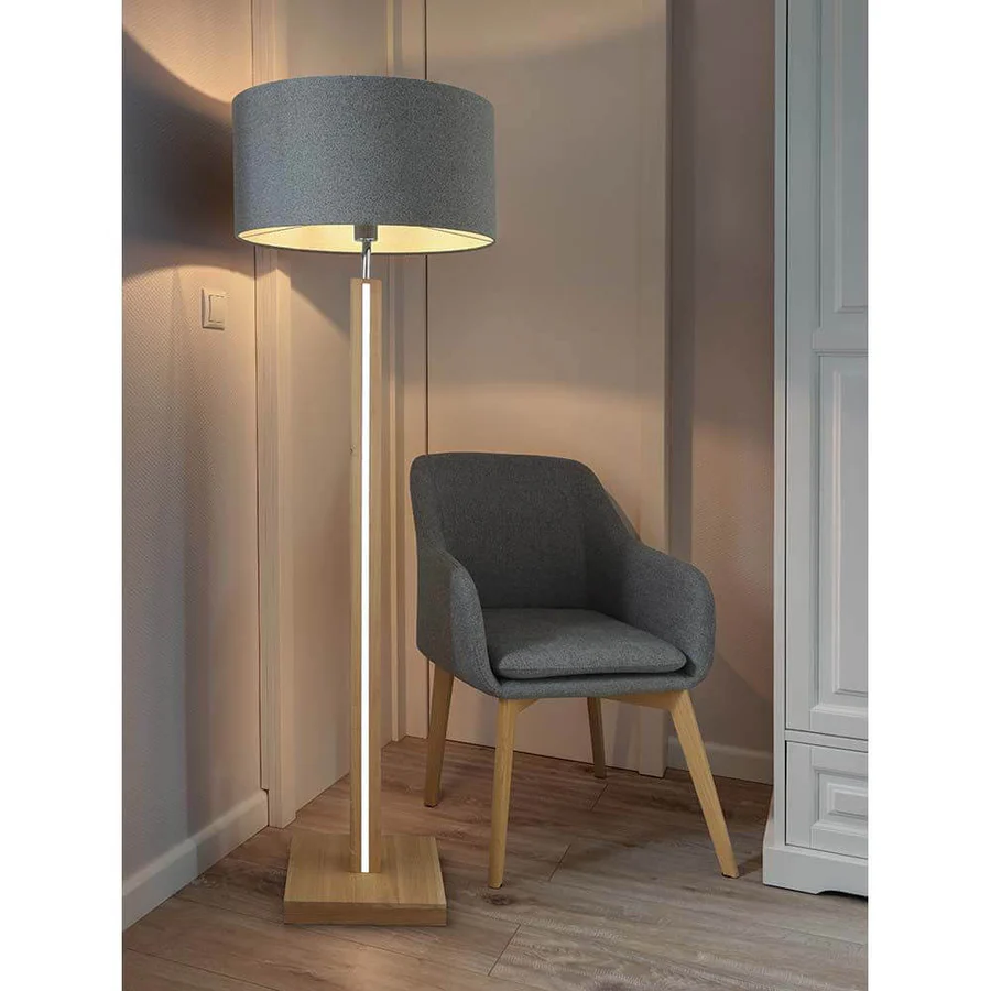 Die LED Stehlampe Asseto verbindet edles Eichenholz mit einem hochwertigen Textilschirm in Grau und schafft so eine warme, wohnliche Atmosphäre. Mit ihrer harmonischen Kombination aus Naturmaterialien und moderner Technik fügt sich die Leuchte perfekt in skandinavische, minimalistische oder klassische Interieurs ein.