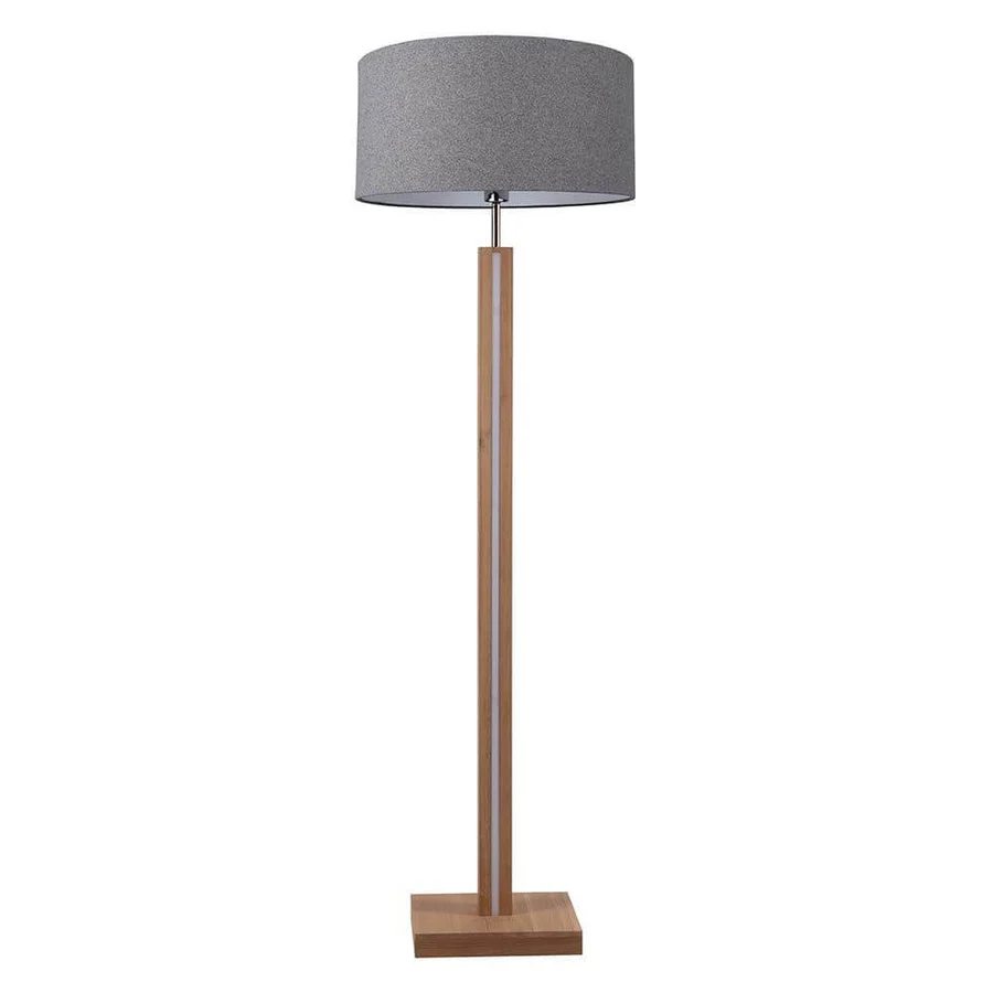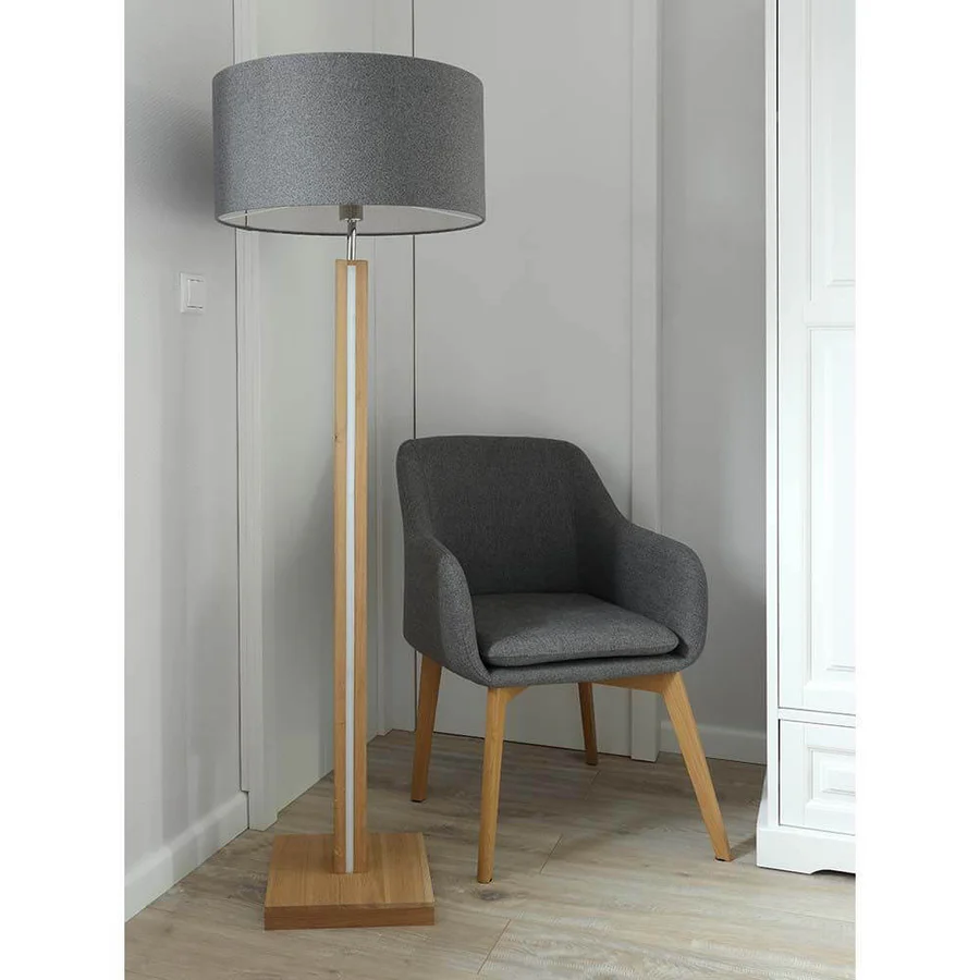 Elegante Stehleuchte aus geöltem Eichenholz mit Textilschirm in Grau