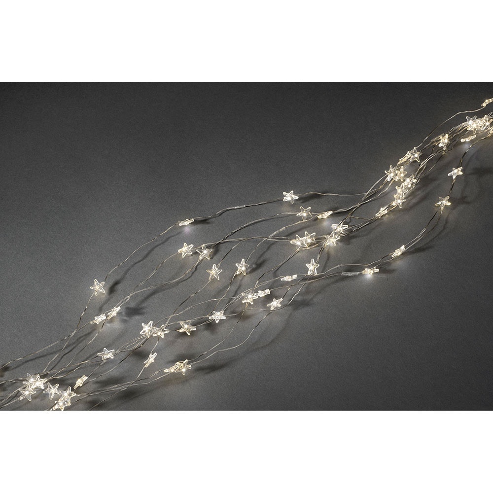 LED Sternenlametta, 10 Stränge à 9 Dioden, 90 warm weiße Dioden, 12V Innentrafo, silberfarbener Draht