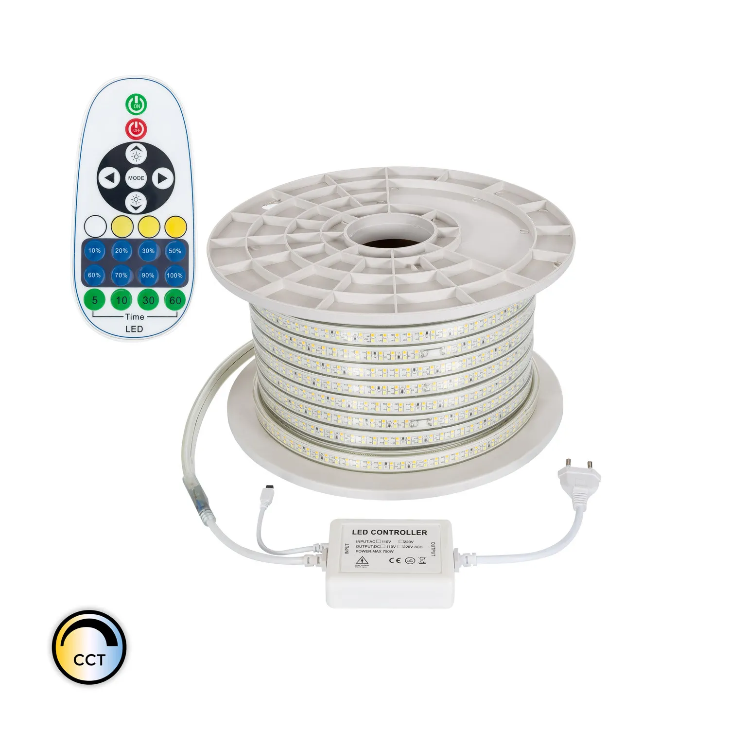 Controller für LED-Streifen CCT, die mit 220 V Wechselstrom betrieben werden, mit IR-Fernbedienung (Infrarot) mit 23 Tasten und 10 m