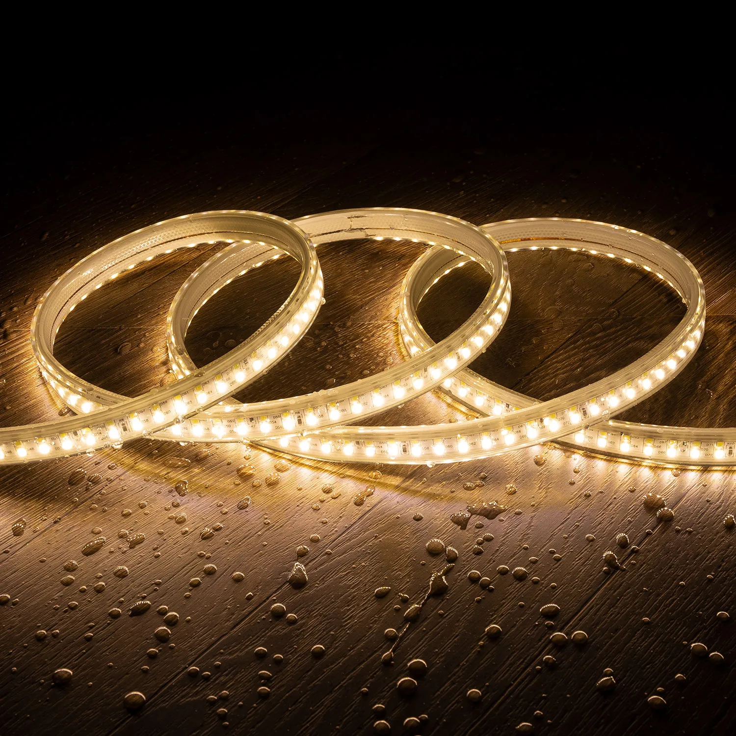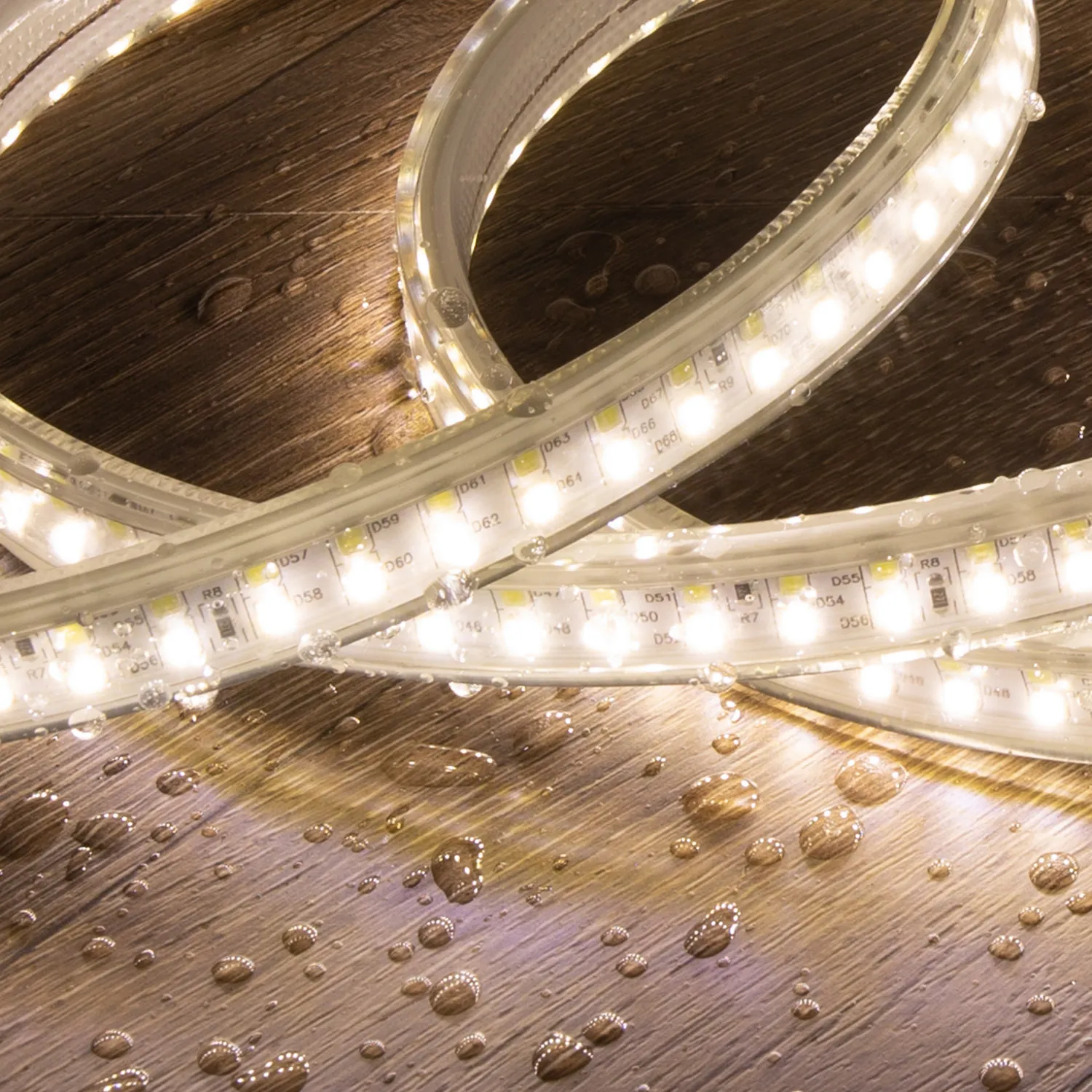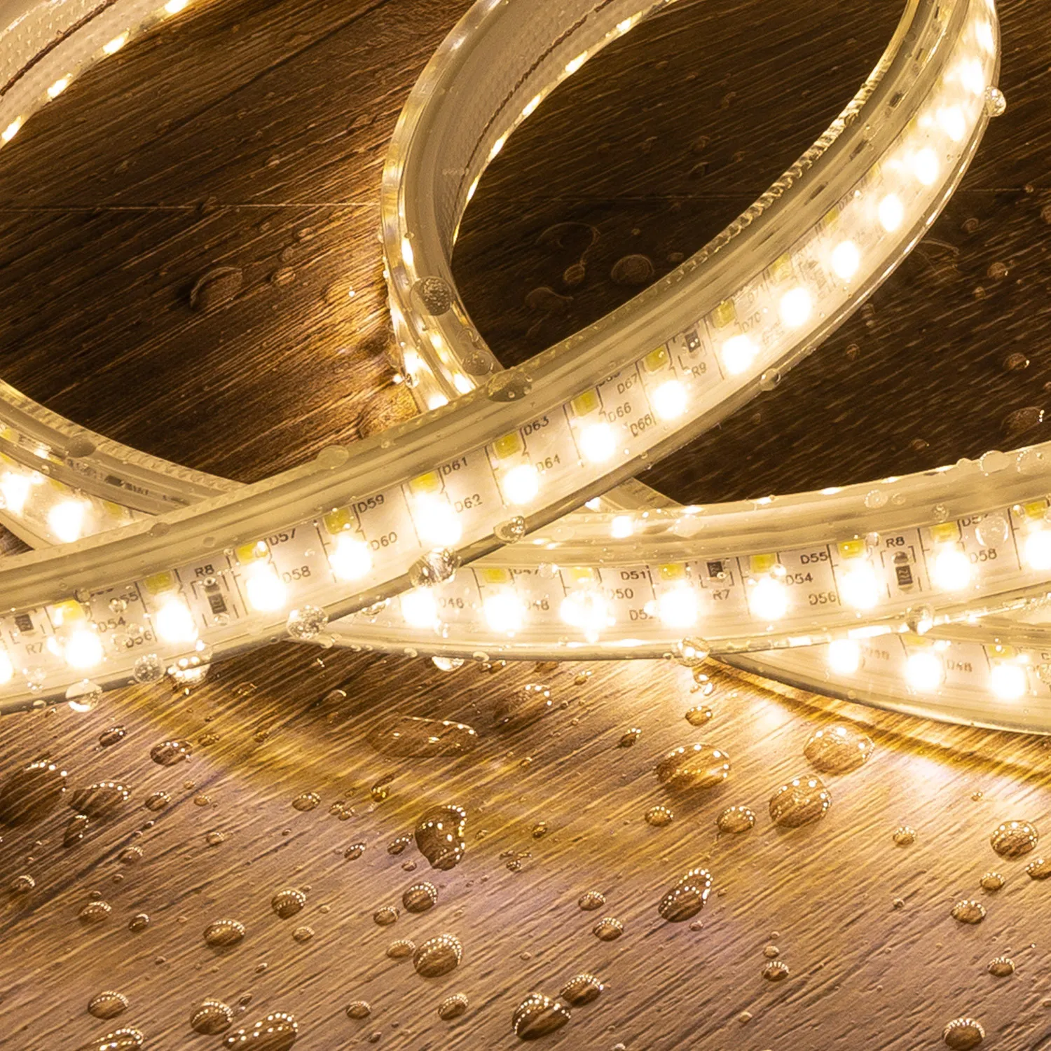 Unsere LED-Streifenrolle 20m 220V AC 120 LEDs/m Breite 9mm Schnitt alle 10cm IP67, bietet eine großartige Lösung für energieeffiziente und