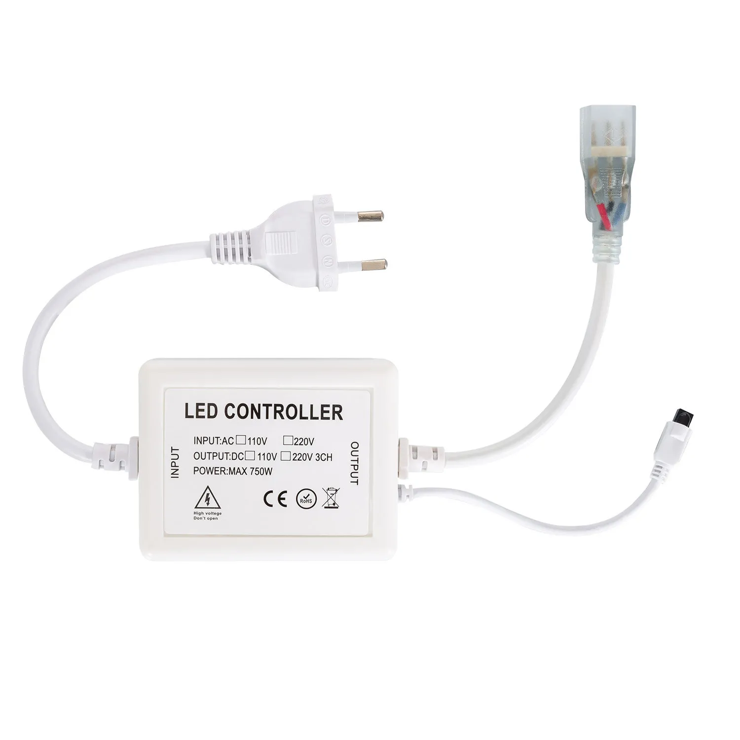 Der LED-Lichtschlauchrolle 50m 220V AC 36 LED/m Kaltweiß Schnitt alle 100cm IP65 benötigt keine Stromversorgung, da er über ein Gleichrichterkabel