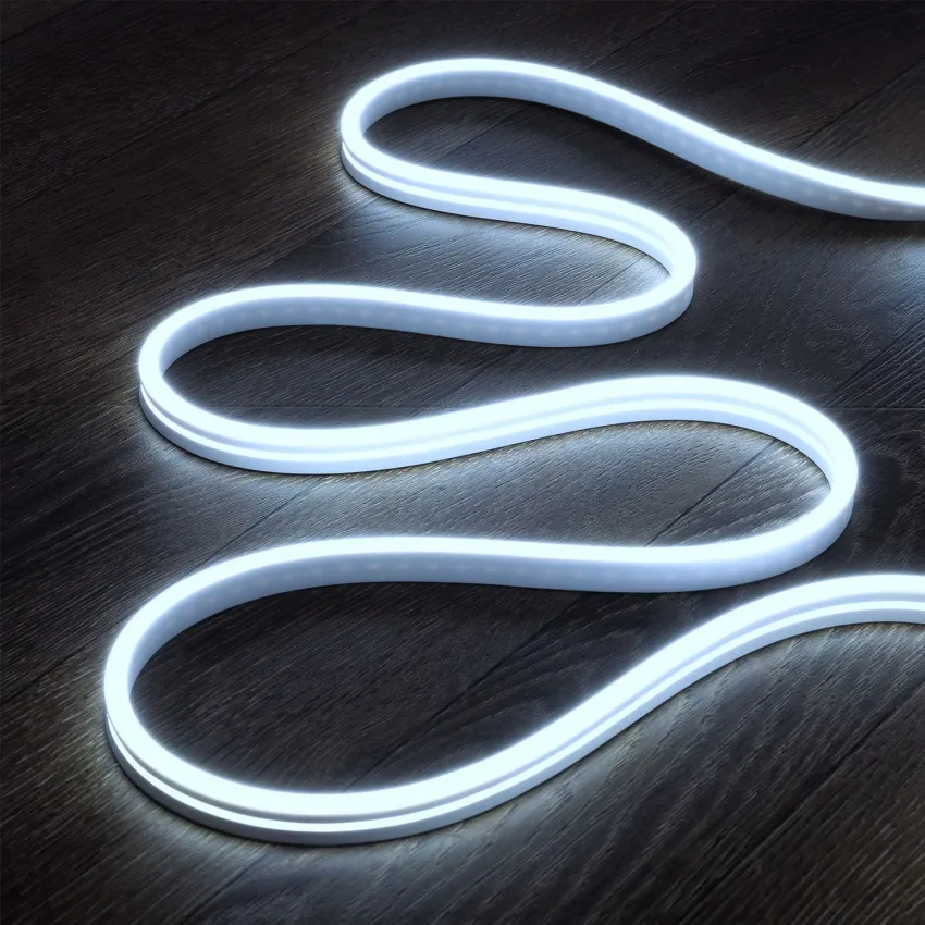 Die Vielseitigkeit der Neon-LED-Rolle mit 24V DC 120LED/m 50m IP65 ermöglicht eine Vielzahl von Anwendungen wie z.B. dekorative oder beleuchtende Durchgangsbereiche. Sehen Sie viel Verwendung in Räumen wie Fenstern, Korridoren, Vitrinen, Regalen usw.