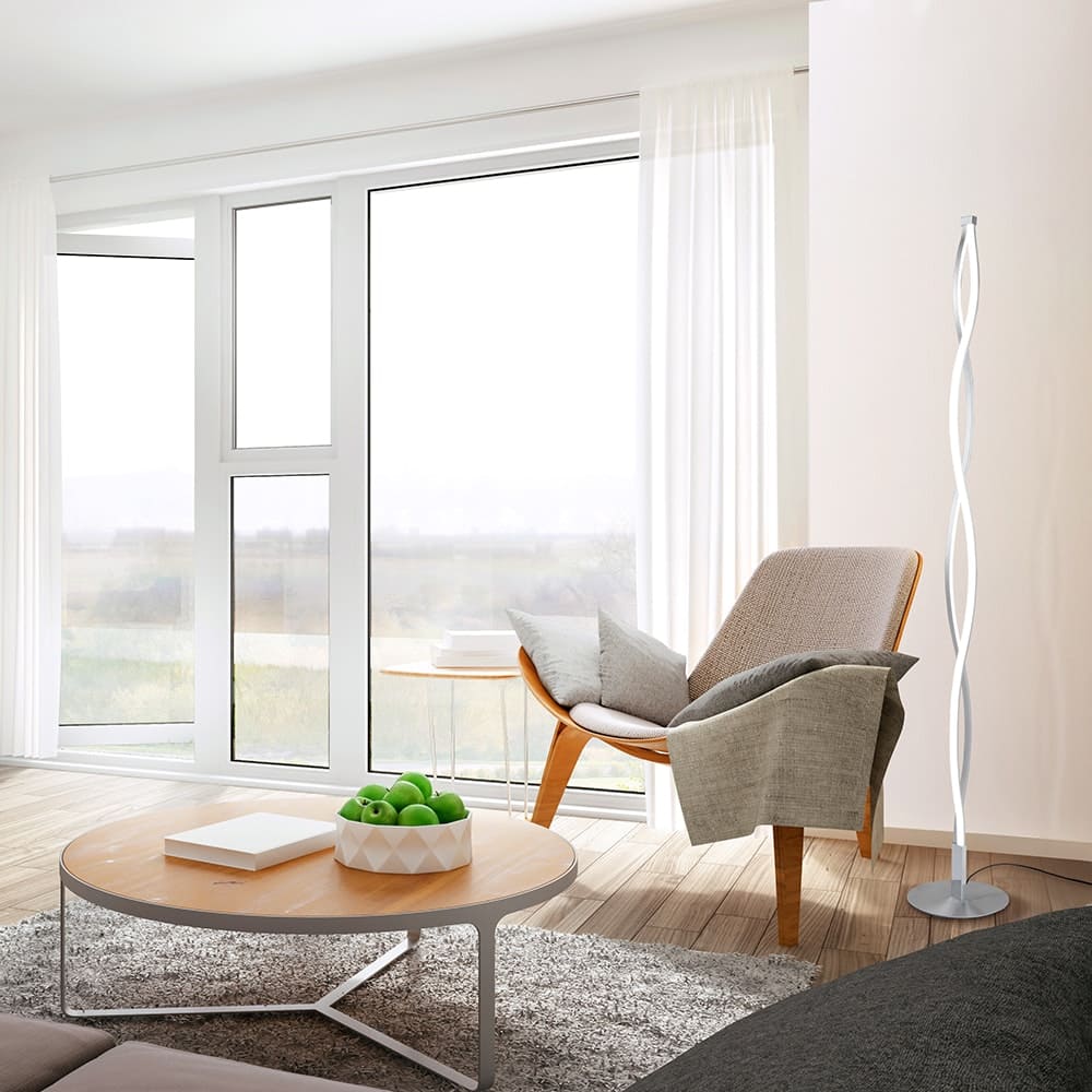 Die Sahara Silver ist eine dimmbare Stehleuchte, die es ermöglicht, die Lichtintensität nach Bedarf anzupassen und eine warme und gemütliche Atmosphäre zu schaffen.