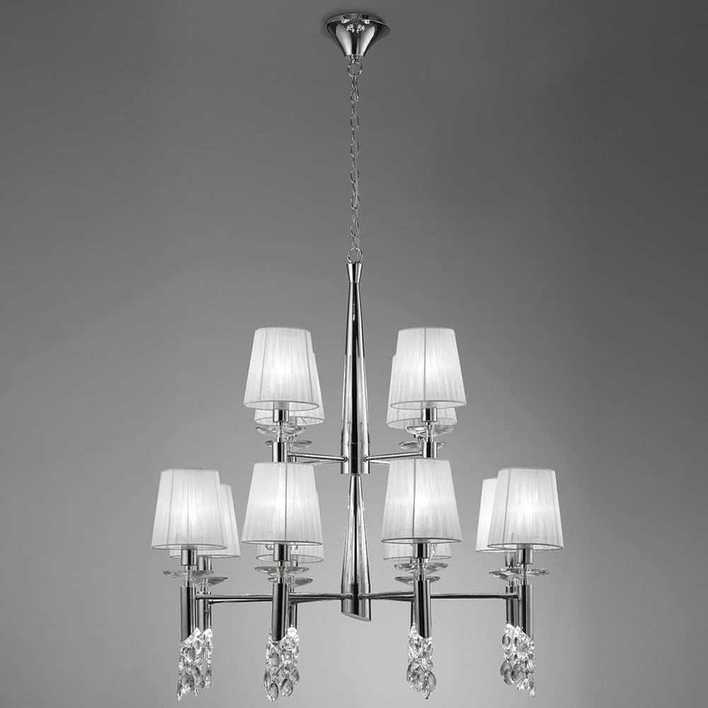 - Aufwendiges Design: Die Tiffany-Kollektion zeichnet sich durch ihr raffiniertes Design aus, das E27- oder E14-Lampenfassungen auf der oberen Ebene mit diskreten G9-Lampenfassungen auf der unteren Ebene in jedem unteren Rohr kombiniert. Dieses clevere Konzept erhöht direkt den Glanz der Kristallschnitzereien und wirft gleichzeitig strahlendes Licht nach unten.